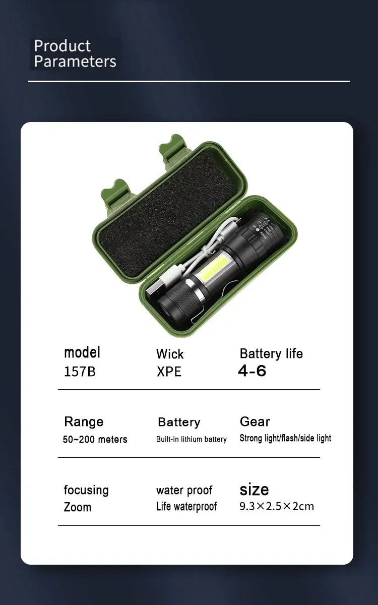 1-5PCS Mini LED Flashlight Zoom Torch COB+XPE Lamp Built-in Battery Lamp Outdoor Waterproof Emergency Pocket Light With Pen Clip